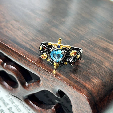 Gothic-Ring mit blauem Zirkonia im Herzschliff für Herren
