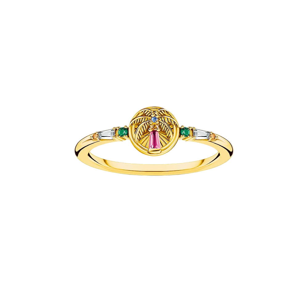 Discover the timeless elegance of our gold ring with a colorful palm tree, a piece of jewelry that reflects the serenity and charm of the tropics. This 925 sterling silver piece combines the luxury of gold plating with delicate details like sparkling colored stones. Immerse yourself in a world where every element is carefully considered: the palm tree motif in the center symbolizes tranquility, while the emerald green and pink accents add a vibrant and modern touch. Whether for a special occasion or to add a touch of sophistication to your everyday look, this ring is the perfect accessory to enhance your unique style.