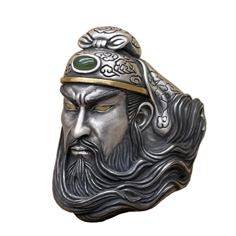 Discover the timeless elegance of our silver ring, inspired by the legendary warrior Guan Yu, a symbol of strength and honor in Chinese culture. The result of outstanding craftsmanship, this unique piece combines a bold design with intricate details to capture the majesty of this historical hero. Crafted from a high-quality silver alloy, the ring features an ornate portrait of Guan Yu, enhanced by colorful accents. Every curl of his hair and the intricacy of his armor are meticulously sculpted, giving this piece a distinctive character that's guaranteed to attract attention.