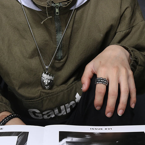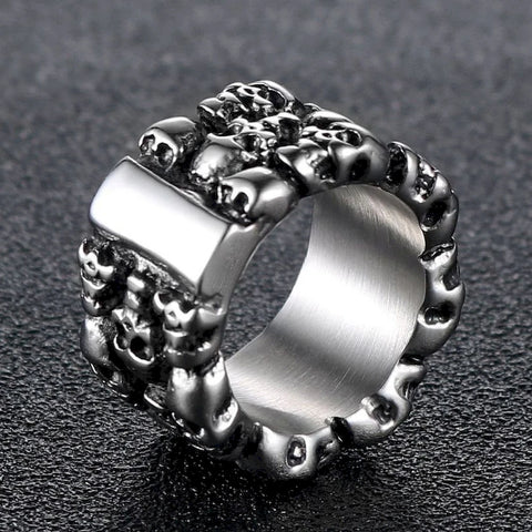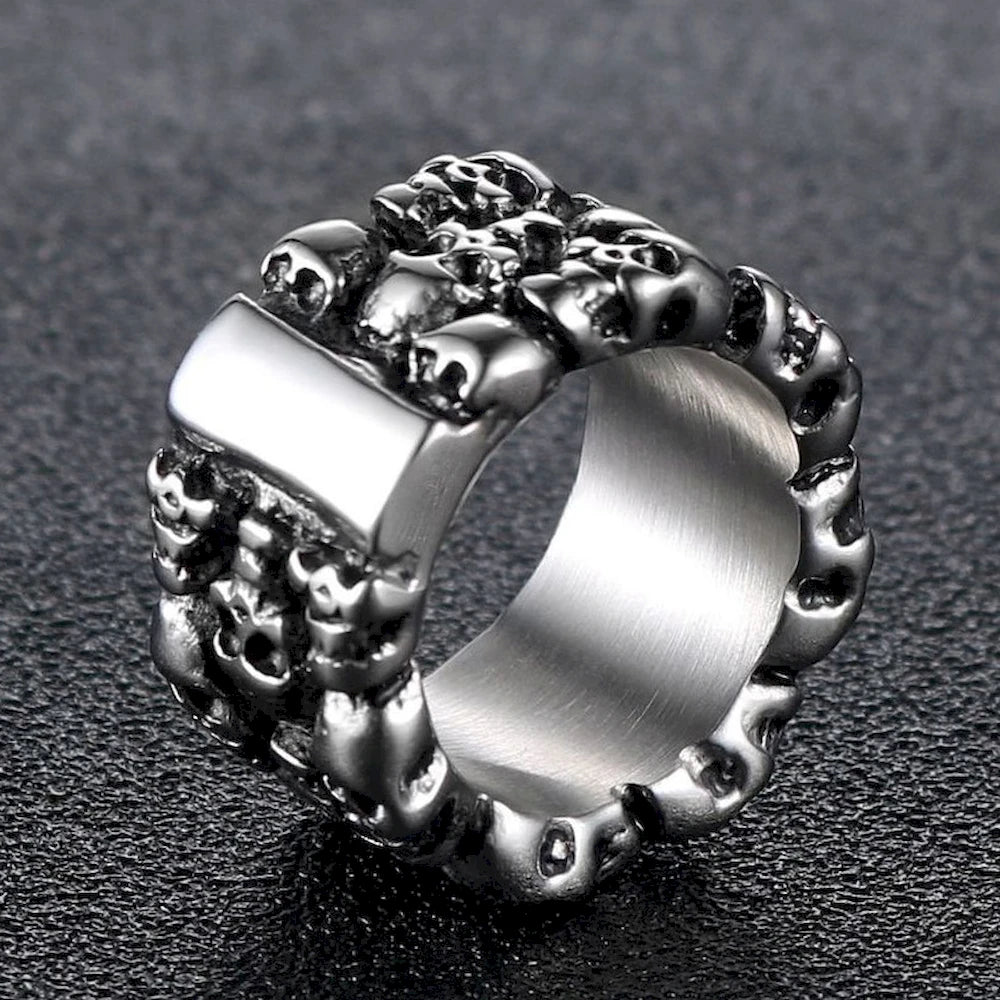 Dodaj wyrazistego charakteru swojemu stylowi dzięki naszemu pierścionkowi ze stali nierdzewnej ozdobionemu motywami czaszek i szkieletów. Ten wyjątkowy element oddaje ducha punku swoją wyrazistą estetyką i jest idealny dla tych, którzy nie boją się wyróżniać z tłumu. Konstrukcja ze stali nierdzewnej gwarantuje trwałość i wodoodporność, a jednocześnie zapewnia lśniące wykończenie, które z pewnością przyciągnie wzrok. Pierścionek jest ozdobiony misternymi detalami, które podkreślają otaczające go czaszki, dodając Twojej stylizacji urzekający wymiar. Niezależnie od tego, czy wybierasz się na wieczorne wyjście ze znajomymi, czy chcesz podkreślić swoją silną osobowość, ten pierścionek to niezbędny dodatek, który podkreśli Twoją indywidualność.