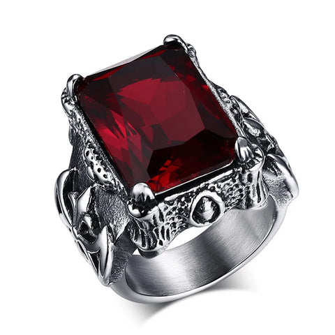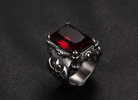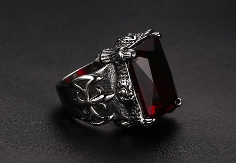 Vintage Gothic Ring mit synthetischen Rubinen für Männer